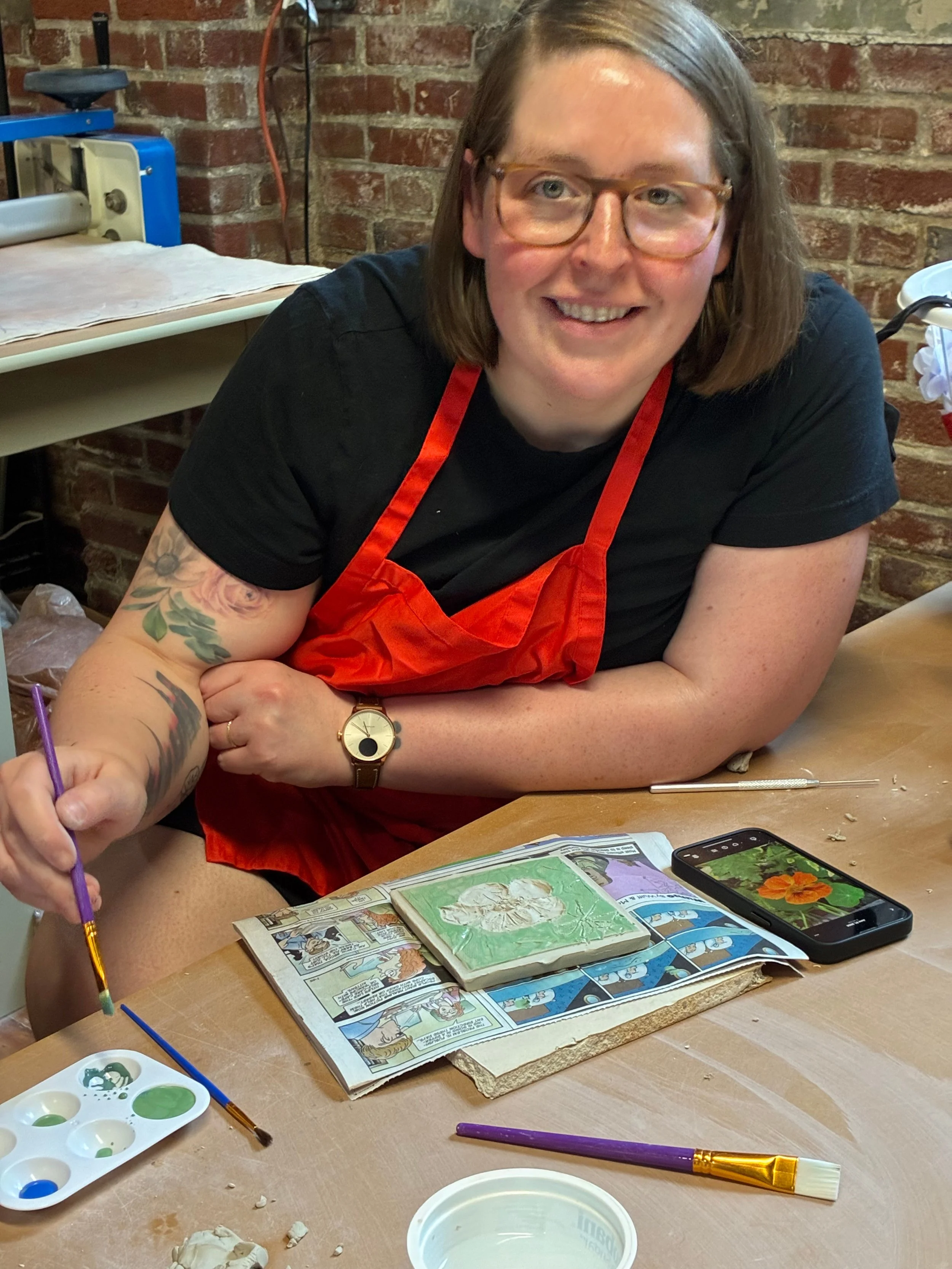 This fall, we are offering a series of $10 community workshops, open to anyone age 11 and up. Come visit the studio, decorate a clay tile, and maybe get hooked on pottery! No experience necessary. All materials supplied.